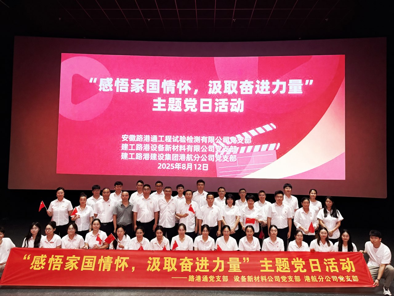 8月12日,路港通檢測黨支部聯(lián)合建工路港所屬單位黨組織開展“感悟家國情懷 汲取奮進(jìn)力量”主題黨日活動,共同觀看愛國主義題材影片《南京照相館》。