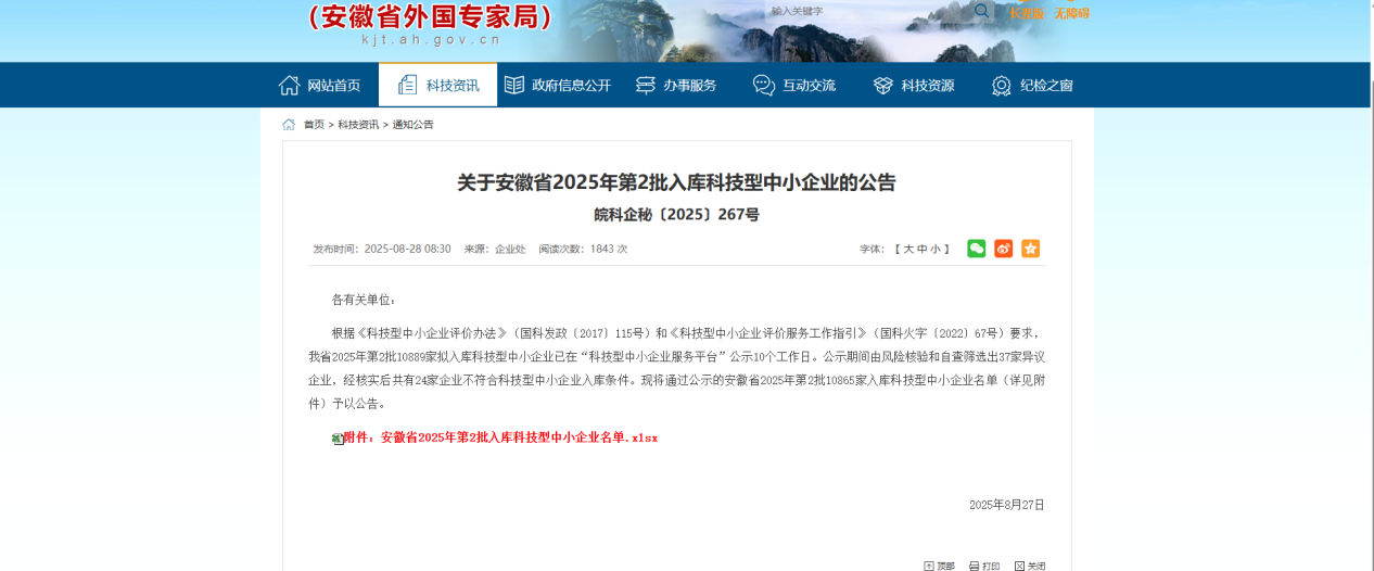 近日,安徽省科學(xué)技術(shù)廳公布2025年第二批入庫(kù)科技型中小企業(yè)名單,安徽天筑智檢信息技術(shù)有限公司再度入選,連續(xù)兩年獲此認(rèn)證,標(biāo)志著省級(jí)科技管理部門對(duì)天筑智檢自主創(chuàng)新能力、技術(shù)研發(fā)活力及發(fā)展?jié)摿Φ母叨日J(rèn)可。