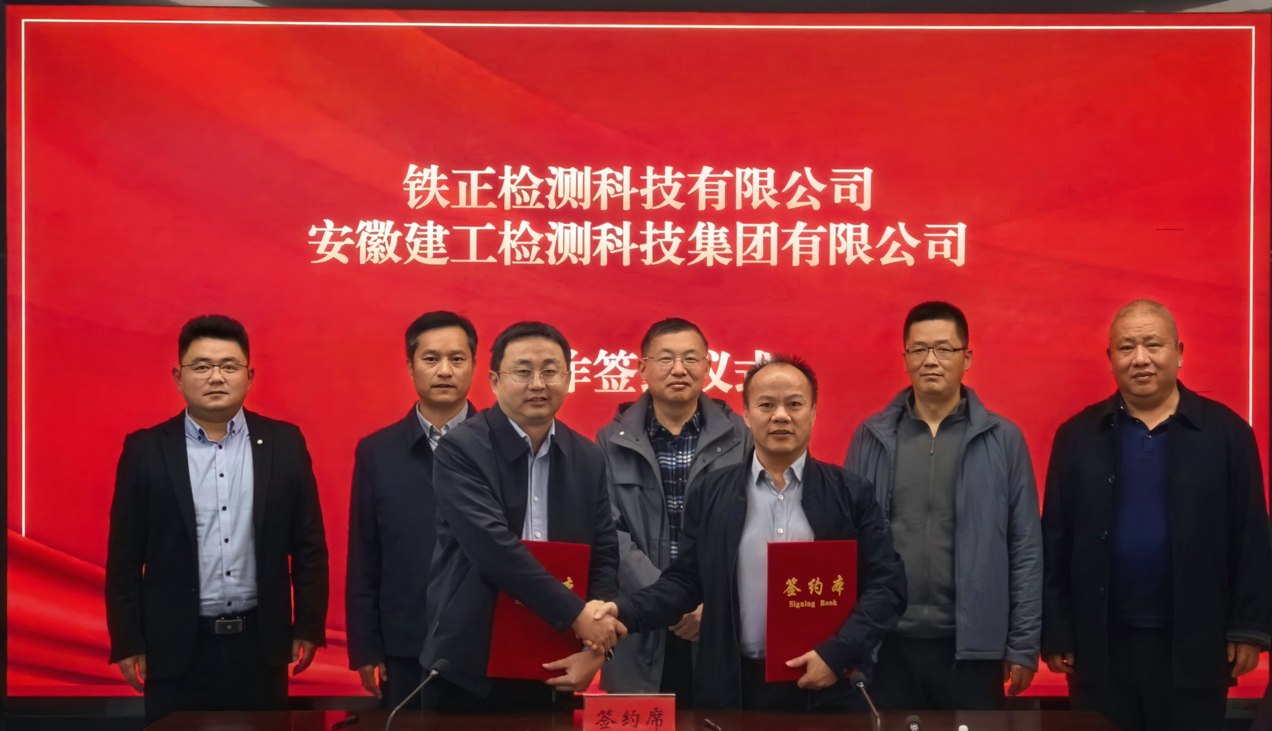 12月10日下午,鐵正檢測(cè)科技有限公司黨委副書(shū)記、總經(jīng)理蘇磊一行到訪(fǎng)建工檢測(cè)公司,雙方就項(xiàng)目合作、科研攻關(guān)、新技術(shù)推廣及人才培育等領(lǐng)域展開(kāi)深入交流,并現(xiàn)場(chǎng)舉行合作簽約儀式。