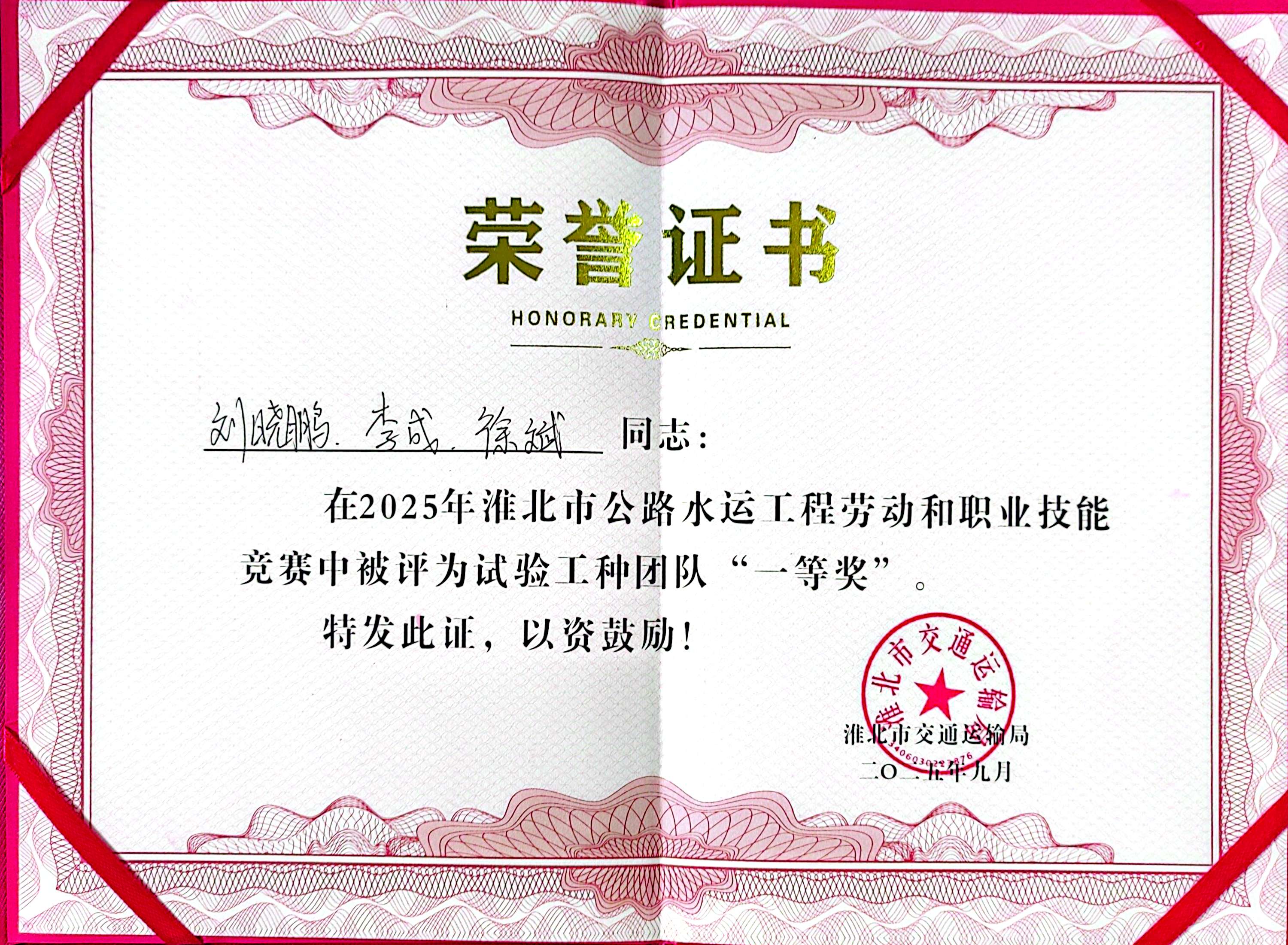 此次獲獎,既是對公司技能人才培養(yǎng)成果的肯定,更激勵著全體員工以賽促學、以學促干,為淮北市公路水運工程高質(zhì)量發(fā)展貢獻更多力量。
